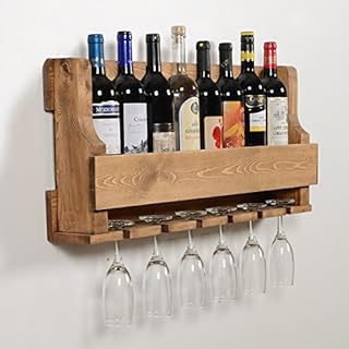 Woodymood ワインラック グラスホルダー 壁掛けワインラック ボトル8本 ワイングラス6本用ハンガー ブラウン ブラウン M.KT.01.12859