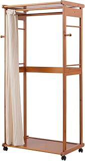 ハンガーラック ブラウン 茶色 カーテン付き キャスター付 北欧 コートハンガー 収納ハンガー 高さ160 目隠し おしゃれ 木製 天然木 (ブラウン)
