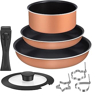 Sumeriy フライパンセット ダイヤモンドコート鍋 ガス火/IH対応 取っ手のとれる ガラス蓋付き ブラウン (5点セット, ブラウン)