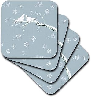 (set-of-4-Soft) - 3dRose Two Turtle Doves and Pretty Snowflake Ornaments at Christmas - Soft Coasters, Set of 4 (cst_216708_1)