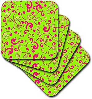 (set-of-8-Soft) - 3dRose cst_110744_2 Elegant Lime Green and Pink Scroll Design-Soft Coasters, Set of 8