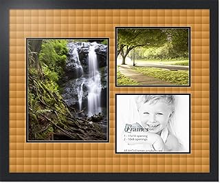 ArtToFrames コラージュフォトフレーム ダブルマット 3つの開口部 サテンブラックフレーム 1-11x14 and 2-8x10 ブラウン Double-Multimat-750-596/89-FRBW26079