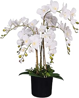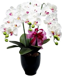 AMERIQUE ゴージャスでユニーク 2フィート 人工シルクフラワープラント 保育園用プラスチックポット 本物の技術を感じる 超品質 ホワイトオーキッド 2フィート