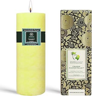 EcoAroma ホワイトオーキッド&バニラ 香りつきオーガニックココソイピラーキャンドル 3 x 9インチ 長持ちキャンドル ホームデコレーション用 100%天然ココナッツソイワックスブレンド