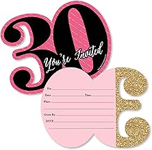 Chic 30th Birthday - Pink, Black and Gold - Shaped Fill-In Invitations - Birthday Party Invitation Cards with Envelopes - Set of 12
