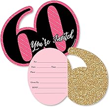 Chic 60th Birthday - Pink, Black and Gold - Shaped Fill-In Invitations - Birthday Party Invitation Cards with Envelopes - Set of 12