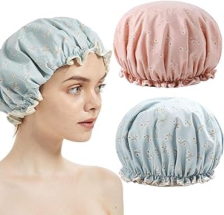 TooCoo シャワー キャップ、二重防水層 女性 風呂 シャワー 帽子、ファッショナブル EVA 入浴 シャワー キャップ 2パック(花)
