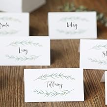 UNIQOOO 50枚パック 緑の折りたたみ式テーブルテント プレイスカード シンプルでエレガントなボタニカルなツイグデザイン 結婚式 パーティー ブライダルシャワー 宴会 お祝いイベントに最適 3.5 x 2インチ