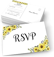 321Done ひまわり RSVP ポストカード (50枚セット) ホワイト L 4x6 USPS 郵便局 住所 応答カード 結婚式 ブライダル ベビーシャワー用 パーティーのゲストカウント 米国製 ヴィンテージ素朴な花柄