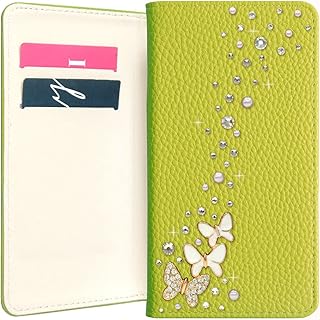 iPod touch 第7世代 2019年モデル ケース 手帳型 かわいい 蝶々 キラキラ マグネットなし ベルトなし カバー (イエローグリーン) apple アイポッド アイポッドタッチ