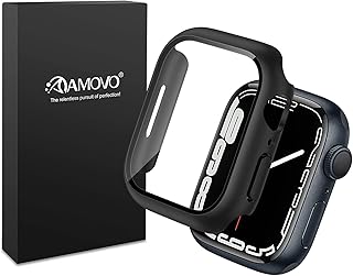 【2021独創改良新モデル】 AMOVO Apple Watch 用 45mm ケース 3D全面保護 Apple Watch 用 Series 7 フィルム 日本旭硝子材 45mm ガラスケース 硬度9H 一体感 キズ防止 軽量 二重構造 アップルウォッチ用 Series7 カバー 防滴 防塵 (45mm, 艶消し黒枠1個)