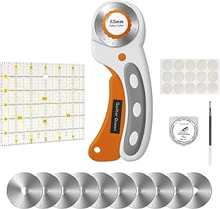 Quilter Queen 45mm ロータリーカッター 布用 ホワイトカッター SKS-7ホイールブレード10枚 再利用可能なエア消しゴムペン 定規付き 人間工学に基づいた裁縫とカッティングキット 紙、布、レザー用
