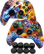 FOTTCZ 滑り止めソフトシリコンカバースキンセット Microsoft Xbox Oneコントローラー用 レインボーコントローラースキン2個 + 親指グリップキャップ8個