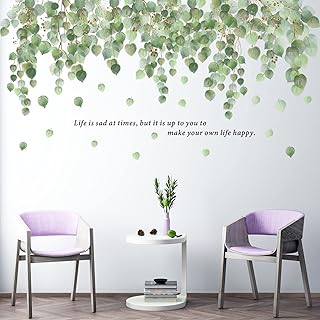 AUHOKY 真珠のつる 壁デカール 吊り下げ式 つる 枝 紐 ウォールステッカー 取り外し可能 剥がして貼れる 緑の木の葉 壁紙 吊り下げブランチ 壁装飾 キッチン リビングルーム ベッドルーム ホームデコレーション