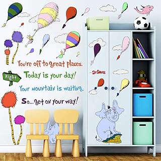 Supzone Dr Seuss ウォールステッカー 引用句 子供の壁装飾 あなたは偉大な場所へ離れている 壁装飾 壁装飾 熱気球 壁ステッカー 子供部屋 寝室 プレイルーム 教室 リビングルーム 壁デカール