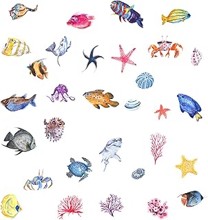 4シート カラフル オーシャンライフ ウォールステッカー 海の生き物 ウォールステッカー 海 魚 クラゲ 取り外し可能 壁装飾 剥がして貼れる 水中 海の装飾 子供 ベビー バスルーム 寝室 リビングルーム