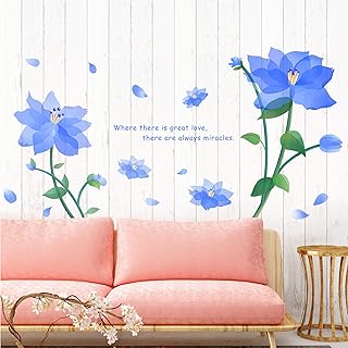 WINDVALE デイジーウォールデカール 青い花 つる壁ステッカー はがせる 貼ってはがせる アート壁画 子供部屋 保育園 教室 リビングルーム 寝室 ホームデコレーション