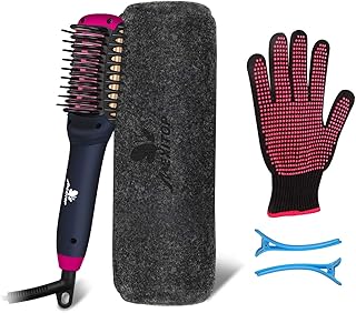 【マイナスイオン 温度記憶機能】 ストレートブラシ ヒートブラシ ミニブラシアイロン 80℃-230℃ 温度調節 急速加熱 火傷防止 温度ロック機能 ポータブル ヘアアイロン ブラシ 60分間自動電源オフ 海外対応 360度回転コード 耐熱手袋&収納袋付き