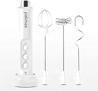 Pakmee ミルク泡立て器 手持ち式 電動フォームメーカー ハンドフォームブレンダー 防弾コーヒー 抹茶 ホットチョコレート ドリンクミキサー ステンレススチールスタンド付き