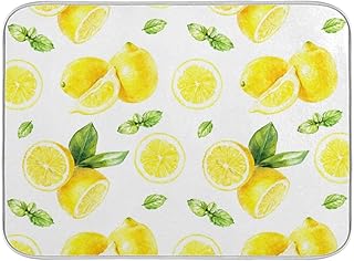 水彩 レモン柄 食器乾燥マット キッチンカウンタートップ用 シンク乾燥マット 吸収性 耐熱性 食器水切りパッド 16 x 18インチ