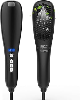 ストレートブラシ ヘアアイロン 【2020最新版・噴霧設計】マイナスイオン 31段階温度調節 60秒間急速加熱 ストレートヒートブラシ マイナスイオン ブローブラシアイロン ストレート&カール両用 LCDデイスプレー ブラシヘアアイロン 火傷防止 静電気防止 海外対応 【PSE認証済・12月安心保証】 (黑)