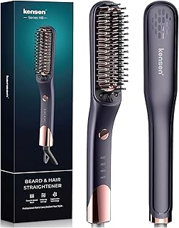 Kensen ストレートブラシ ヘアアイロン ブラシ マイナスイオン 急速加熱 ストレート&カール両用 火傷防止 温度調節可能 PSE認証済 日本語説明書付き …