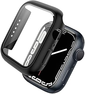 ULOE 対応 Apple Watch Series 7 41mm 用 ケース, 対応アップルウォッチ 7 41mm 保護カバー ガラスフィルム 一体型 PC素材全面保護(ブラック)
